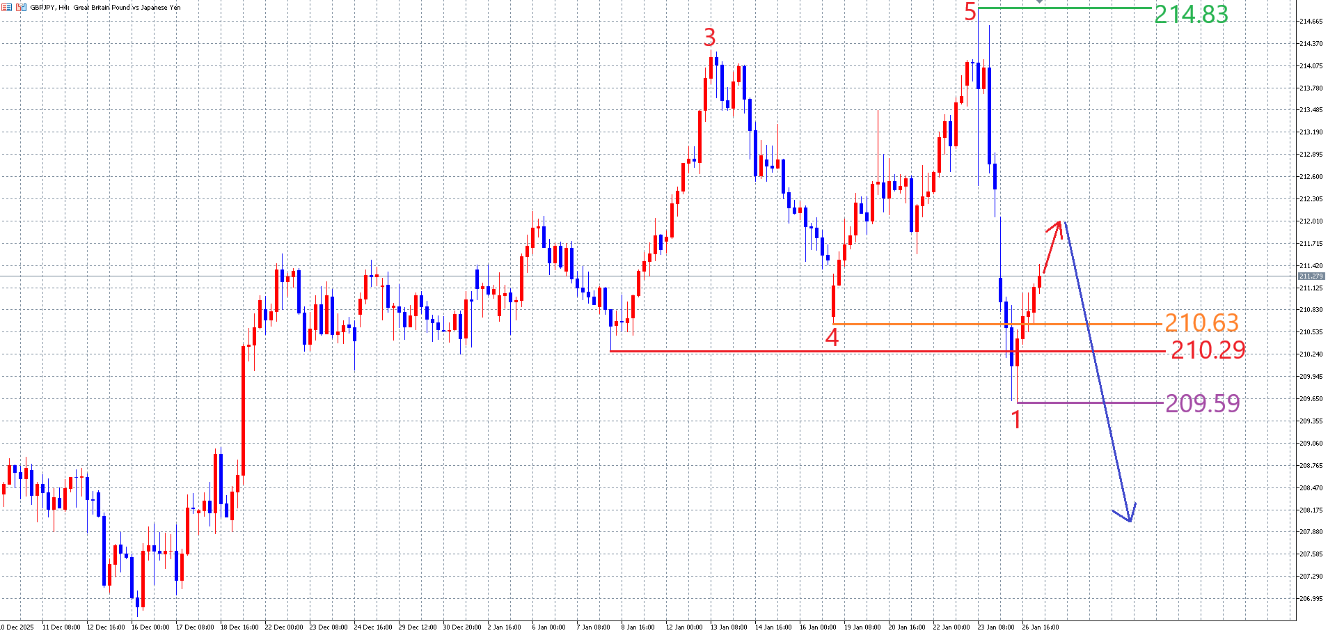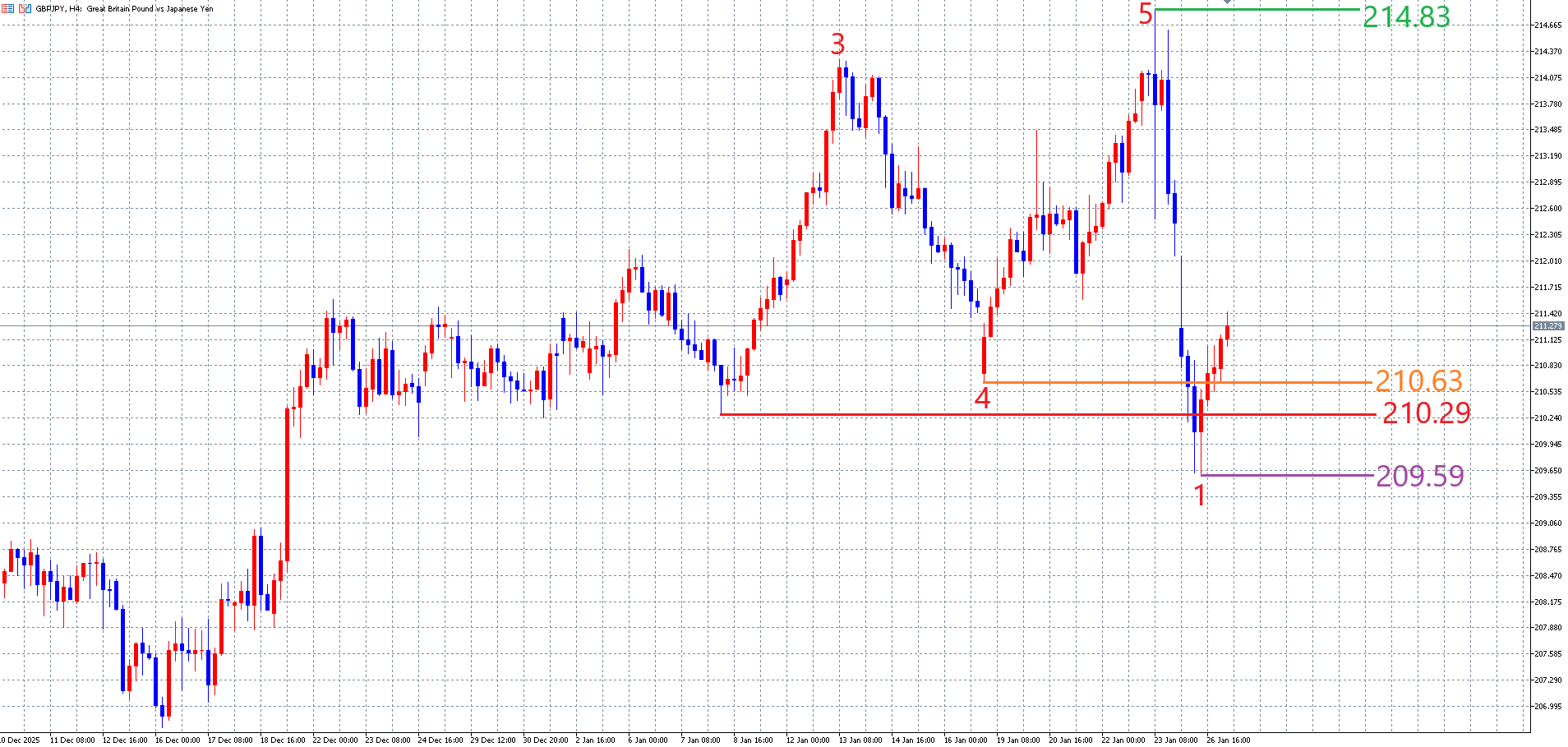 トレード戦略としては、4時間足の第2波の高値からショートエントリー狙いです。