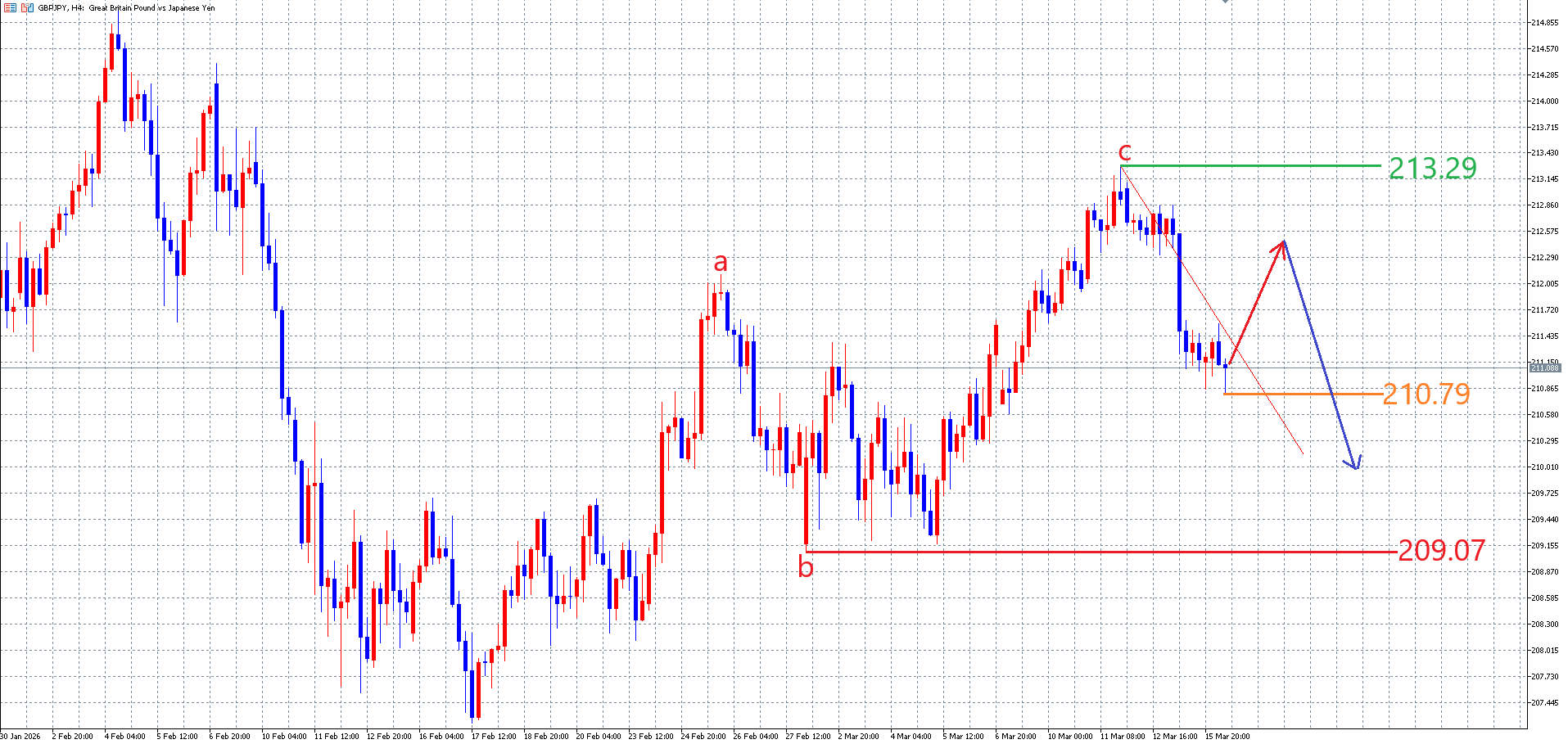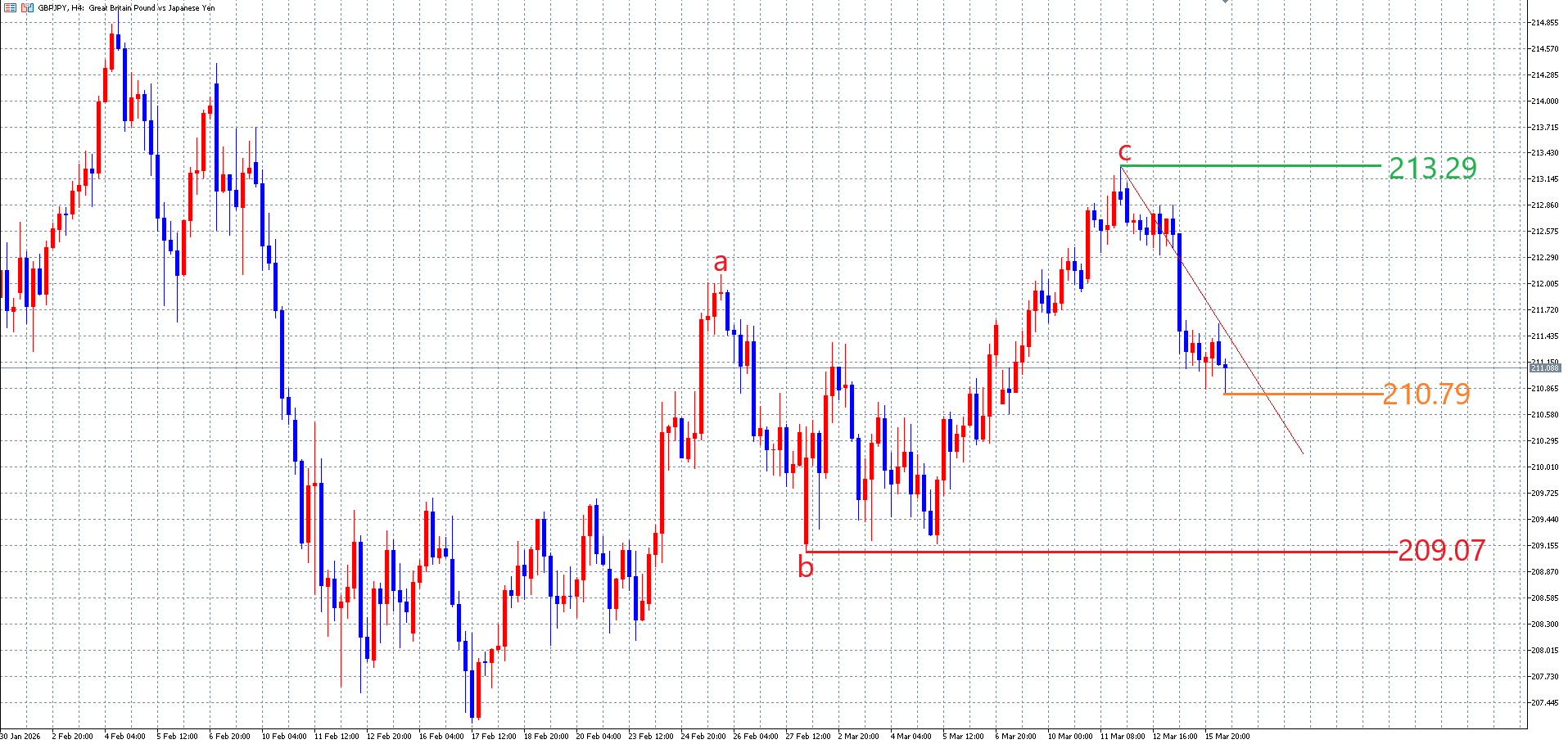 目先の相場の動きは、以下のポンド円の4時間足チャートの画像の様な動きを想定しています。