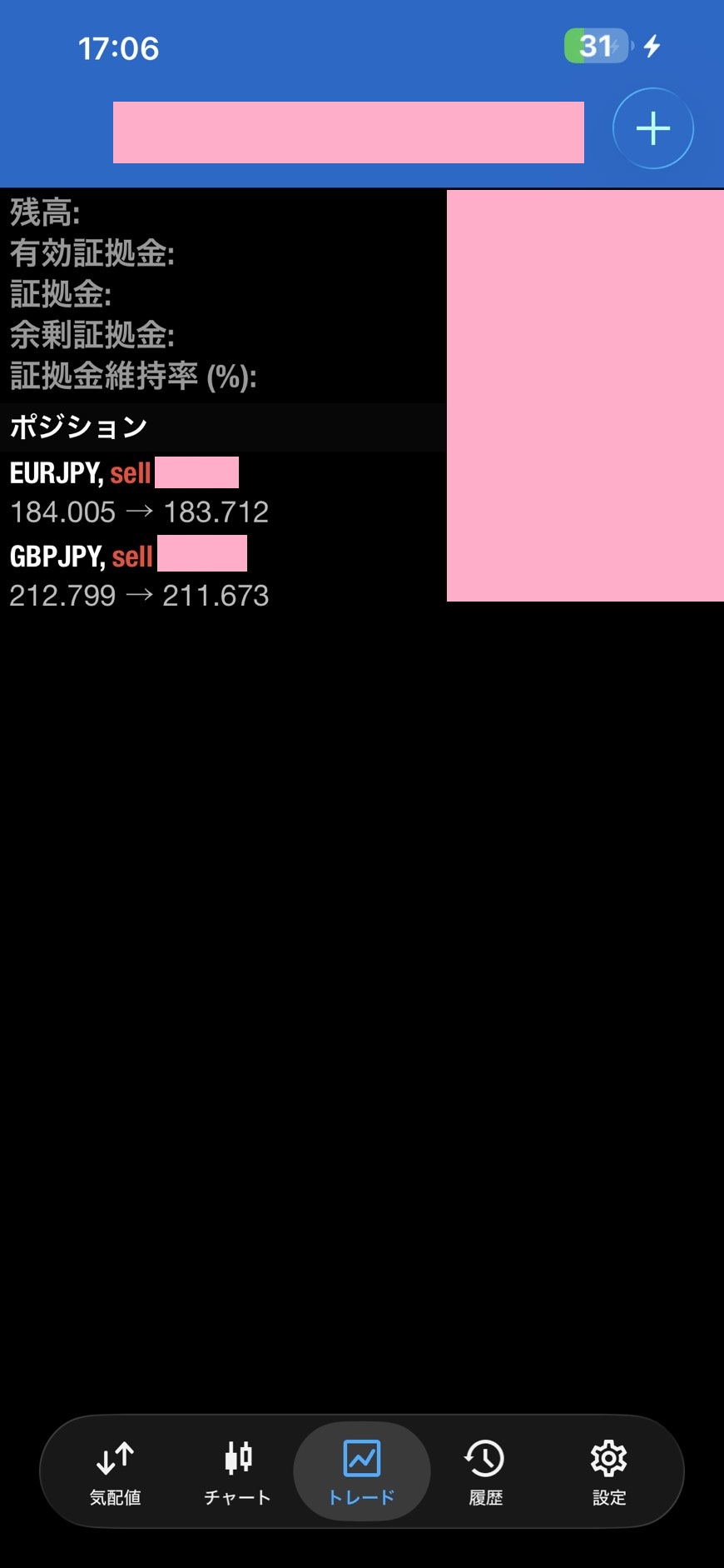 ポンド円のショートポジションは既にポジションの90%を利確しているので、逆指値にかかってもマイナスになる事はありません。