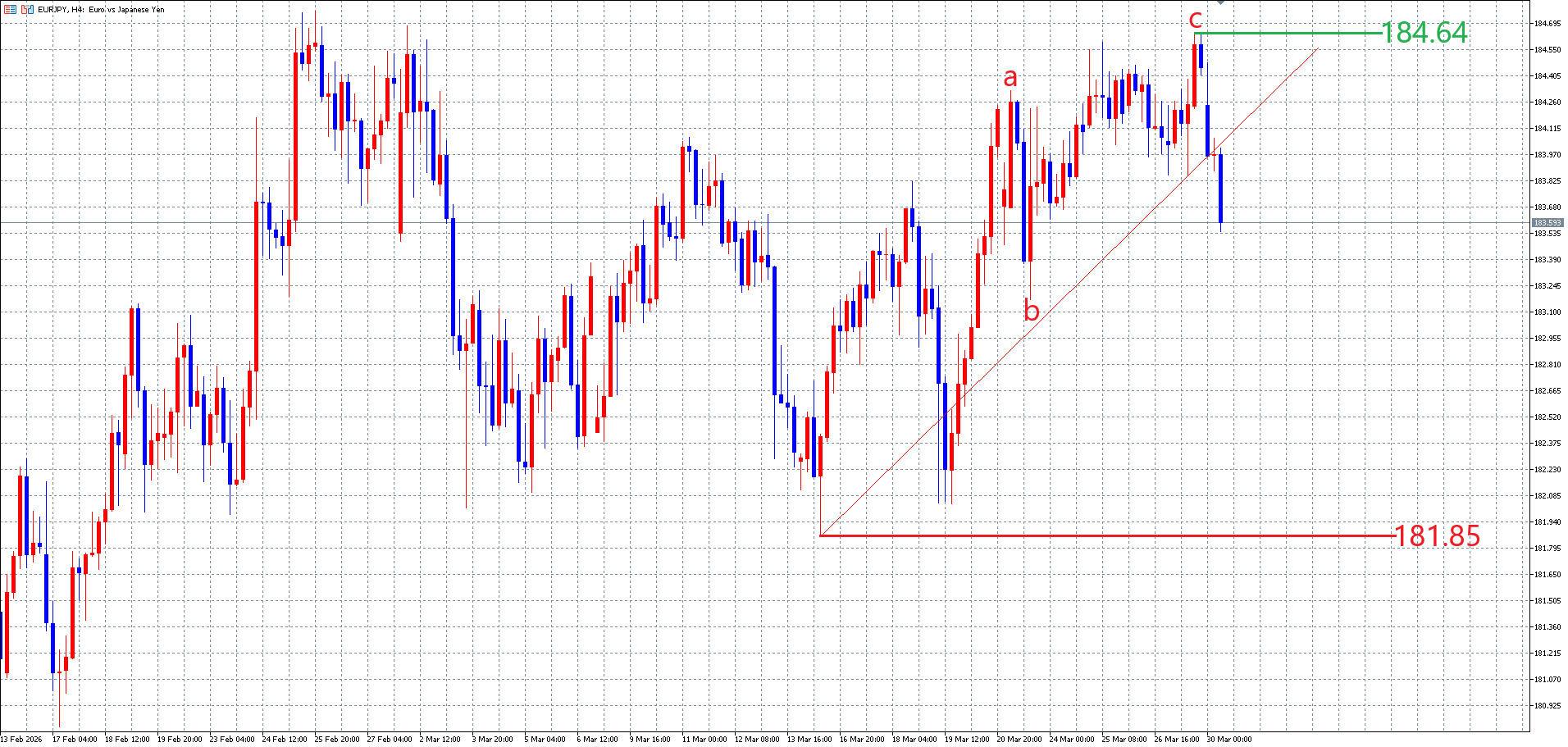 ユーロ円の4時間足チャートです。